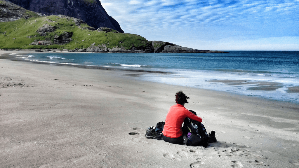 Esatto, avete capito bene, un diritto di tutti. Nei Paesi scandinavi esiste perfino un codice di comportamento, che non è solo un fatto di salvaguardia dell’ambiente ma è un modo di essere e di vivere. Si chiama The Right to Roam, che in italiano viene tradotto come il Diritto di Pubblico Accesso (ma che io preferisco definire “Il diritto di vagabondare”): una sorta di elenco di regole di comportamento per vivere in natura nel rispetto di tutti, luoghi, animali o persone che siano. La verità è che nei Paesi scandinavi non hanno bisogno di vedere queste regole su un pezzo di carta per doverle rispettare, fa parte di loro, lo scrivono per chi arriva a casa loro e tutto questo lo ha dimenticato. E’ un modo di essere e di vivere, ed è talmente radicato che, sedendoti sulla spiaggia di Haukland (Lofoten) per preparare la cena accanto ad un gruppo di coetanei, ti senti quasi in imbarazzo (per non dire sbagliato) per il semplice fatto che tu, altrove, non sei più abituato a tutto questo.. né a vederlo né tantomeno esserne parte. E se da un lato ti viene da sorridere, pensando a quanto ti devi “concentrare” per comportarti in un determinato modo, dall’altro fa veramente una tristezza infinita. È forse l’unica volta nella vita in cui sentirmi sbagliata mi ha fatto stare terribilmente bene.